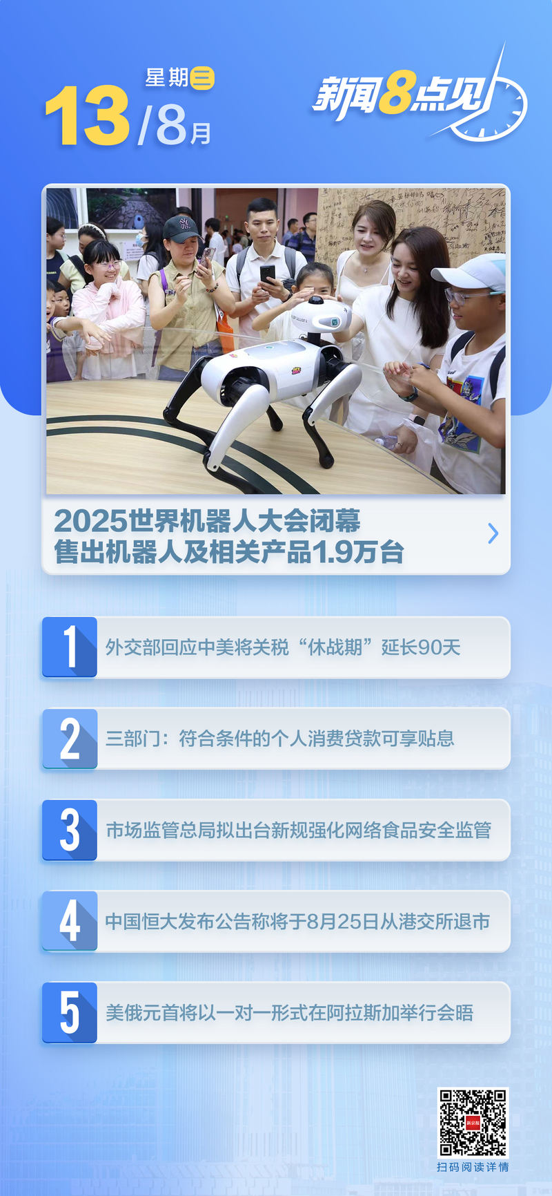 [当前问题]三个部门:合格的个人消费贷款可以享受符合个人消费贷款的兴趣补贴。财政部,大众中国银行和金融法规的州政府最近发布了“针对个人消费贷款的金融利益补贴政策实施计划”。 (财政部)阅读全文>>>详细信息:相关财政官员回答了记者关于“计划实施个人消费贷款的财务利益补贴”的现场预览的问题|州情报局举行了一次新闻发布会,旨在为个人消费贷款和其他相关情况引入利息补贴。州立法机关的情报办公室于2025年8月13日星期三上午10点举行了一个普伦·会议。询问莉亚明副部长和中国受欢迎的副部长以及国家政府的相关官员财务法规提出个人贷款利息补贴政策以及服务行业的贷款补贴政策以及记者的回应问题。 (北京新闻)肝脏>>> 9个分区:符合标准的8种服务行业运营商,财政部,私人部,私人部,私人部和其他九个部门是财务问题,私人部,私人部以及其他需要服务行业运营商的九个部门,要求服务行业运营商运营商服务行业运营商服务行业运营商服务行业经营者需要服务行业运营商的运营商需要服务行业运营商,这些服务行业运营商需要服务行业运营商,这些服务行业运营商需要服务行业运营商,这些服务行业运营商需要服务行业运营商Whoire Service行业Opera需要服务行业运营商需要服务行业运营商的台器意见。 12 True/Xinhua通信局,Ministry of Finance and the Ministry of Emergency Management, have urgently assigned 170 million yuan of the Central Fund for the Central Fund for Natural Disaster Help to help From the province of Jiangsu, Hubei, Hubei, Hubei, Chili, Sichuan, Saints to do his job with the rescue of Jiangsu Province, Hubei, Hubei, Chili, Sichily, Saints, do his job to rescue江苏省,湖北,湖泊,辣椒,西希尔,圣徒。紧急情况将实施紧急响应,例如遭受灾难袭击的人们的搜救,救援,搬迁和重新安置,消除危险,救援,救援,搬迁,搬迁和恢复受灾难袭击并实施紧急回应的日期。紧急检查和纠正次要灾难,以及损坏的房屋等的恢复,最大程度地减少灾难的损失和受害者,实际上可以保证人们的生命和财产安全。 (财政部)阅读全文>>> Gansu Yuzhong首次开发了过渡的记者他从尤苏县尤佐市的兰州市政党委员会宣传部门学到的重建计划。 “重建山区的快速灾难。” (新华社新闻社)阅读全文>>>公共安全部已在老年护理领域发表了五起非法筹款罪的典型案件。 In recent years, according to the deployment and requirements of the Public Security Department, Public Security AgenciesThroughout the country they continue to deepen the correction of unhealthy practices and corruption around people, and in collaboration with departments related to related departments and continue to implement summary and integral financing amendments for total financing in total care facilities to hold the standard of care for large -scale large -scale care, which the standard of illegal care.它有效地保护了老年人的合法权利和利益,并支持健康的发展of老年护理服务行业。最近,公共安全部在疗养院领域发表了五起非法筹款犯罪的典型案例。 (国家公共安全)阅读全文>>> [本地]世界机器人会议已关闭,已出售了19,000个机器人和相关产品。在世界机器人会议上,12 Ofaugust与机器人握手。 8月12日,北京新闻王Fei记者的照片:2025年世界机器人会议已关闭。记者宣布,会议将庆祝其第一个“城镇机器人消费节”,以创建机器人世界和机器人4S 4S商店。从工业促进的角度来看,会议的重点是展示1,569家知名的国家和国际机器人公司的产品,其资金为14.881亿元人民币。研究结果,例如“ 2025智能机器人开发趋势的改善”和“前往国外Resea的机器人”RCH报告“已经启动了六项人才计划,包括“改善智能技能人才的培训计划”和“改善升级促进计划的改进,以改善智能机器人培训平台。 “他们专注于候选人而不会脱离钱。”当然。 8月12日,广州州的教育考试学院于2025年10月发布了一份通知,称将添加与自学考试课程中暂停考试有关的40个新课程。 “在埃尔古纳市的案件中,一个殴打妻子并在做爱后强奸了被告的男人”没有在法庭上宣布。审判是8月12日上午9:30在埃尔古纳市受欢迎的法院举行的。 4:06 PM Liu Yue是参与人员的姐姐,在现场媒体传播中说该案宣布了判决。 (北京新闻)全文阅读>>>这名男子在与Aotai系列失去了10天以上的联系后被救出。我在等运气转移。最近,一个人在越过Aotai线时失去了联系,即连接Qinling山脉Aoshan和Taibai山脉的交叉路口路线。 10天后,他被救出,引起了人们的关注。 8月12日,西安先锋救援活动参加了搜救。电子团队负责人Pindu告诉一位自8月29日以来Haslost联系的北京新闻记者,现已被救出。由于地面,预计将从13早上从山上运输。与此同时,救援队还试图与家人联系并协调直升机的运动。 (北京新闻)阅读全文>>>妈妈走路时带着婴儿,被许多人偷走。西安警察:所有帮派都被捕。 8月9日晚上,TH的Yanta分支机构Shaankhshi省西安的E公共安全办公室发表了警方报告。目前,犯罪嫌疑人(30岁的妇女)已被捕,被盗的手机已成功康复。警察追逐事件中涉及的其余人员。 (XI’AN公共安全局分支机构)阅读全文>>> [财务]中国埃弗格兰德:该清单的状态将从8月25日上午9点开始取消。该行动已被暂停,并且在7月28日之前也没有恢复谈判。股票委员会的清单决定根据相应的清单规则取消该公司的清单。股票清单上的最后一天是2025年8月22日,股票将于2025年8月25日上午9点取消。我们不打算要求对