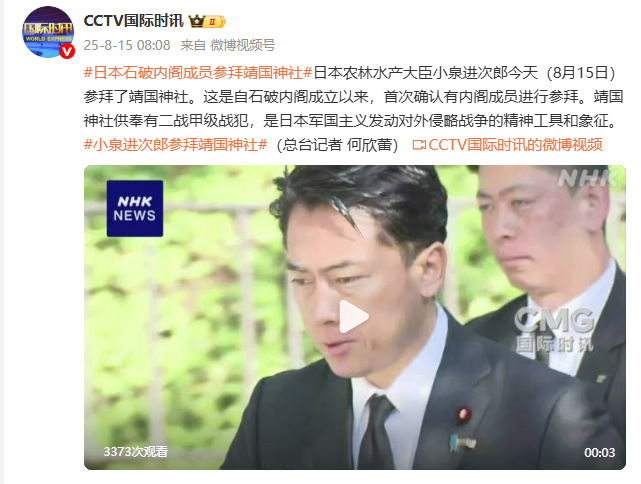 根据日本农业部长@CCTV国际时报的农业部长,小子今天(8月15日)访问了Yasuni庇护所。这是自Ishipo内阁建立以来的第一次,并且已经确认内阁成员将访问。 Yaskuni Sanctuary嫉妒第二次世界大战中战争罪犯的届时。 (一般记者站的Xinlei)编辑Chen Yanting